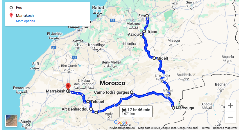 Embark on an unforgettable 3-day adventure from Fes to Marrakech, traversing the Middle Atlas Mountains, the golden dunes of Merzouga, and the dramatic gorges of Todra. Experience camel trekking, desert camping under the stars, and visits to ancient kasbahs, all while enjoying comfortable accommodations and expert guidance.