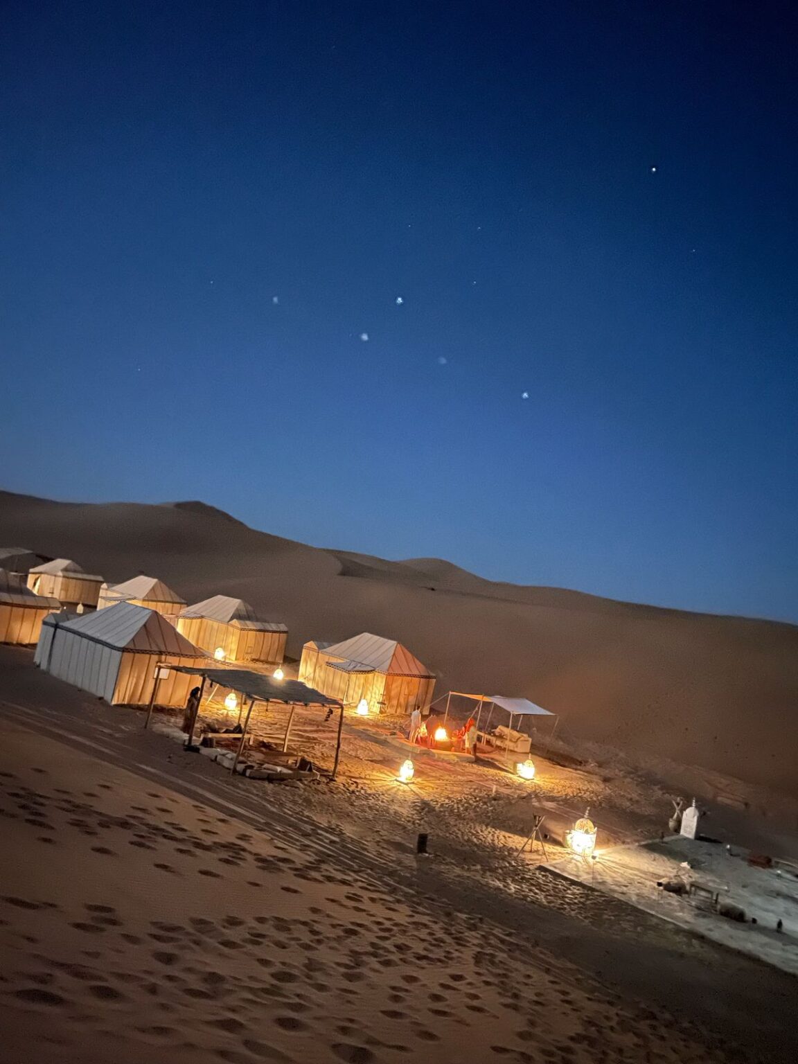 After breakfast, explore the countryside around Merzouga. Visit the Gnawa people, once slaves from Sudan, and experience their unique music and lifestyle. Nearby, the seasonal Merzouga Lake attracts a variety of birds. Discover Rissani’s souk, a bustling market where the king’s family originated and caravans from Mali’s Timbuktu converge. In the afternoon, embark on a camel trek with an experienced guide, crossing the mesmerizing sand dunes. Enjoy dinner at a desert camp equipped with Western-style bathrooms
